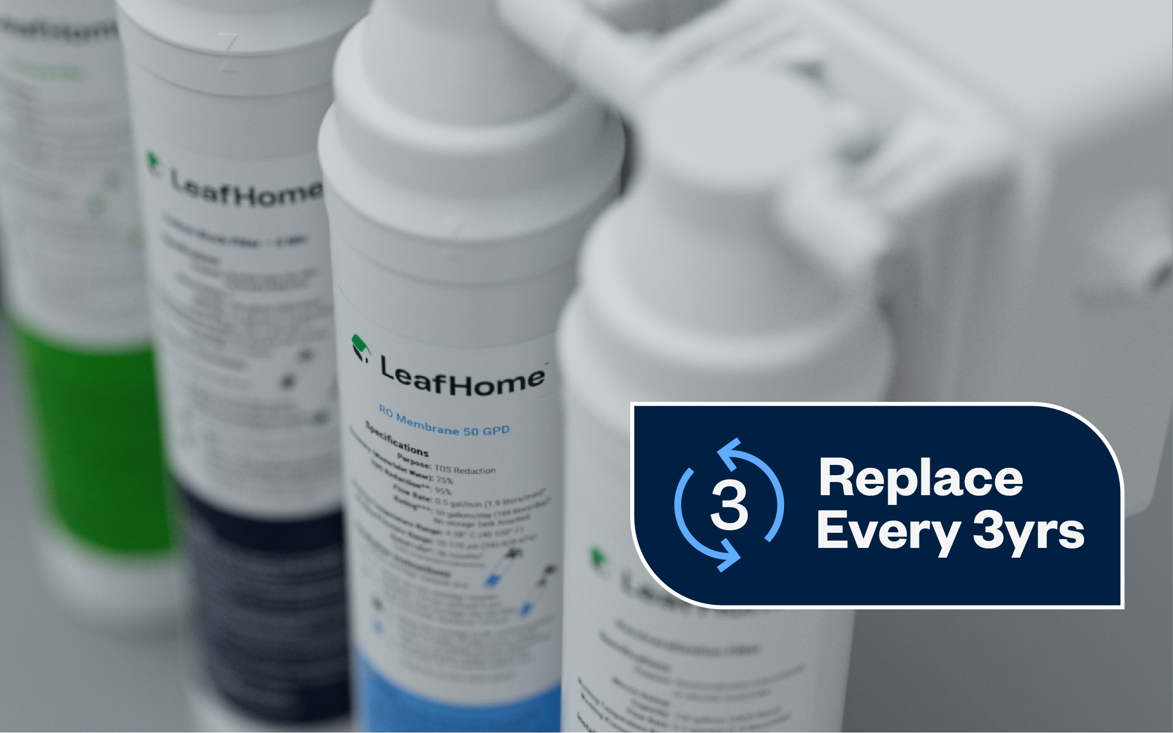 The RO membrane helps to reduce TDS (total dissolved solids) which can build up over time and let in harmful contaminants. By replacing the membrane every 3 years you’ll be sure that your system is running safely and efficiently.