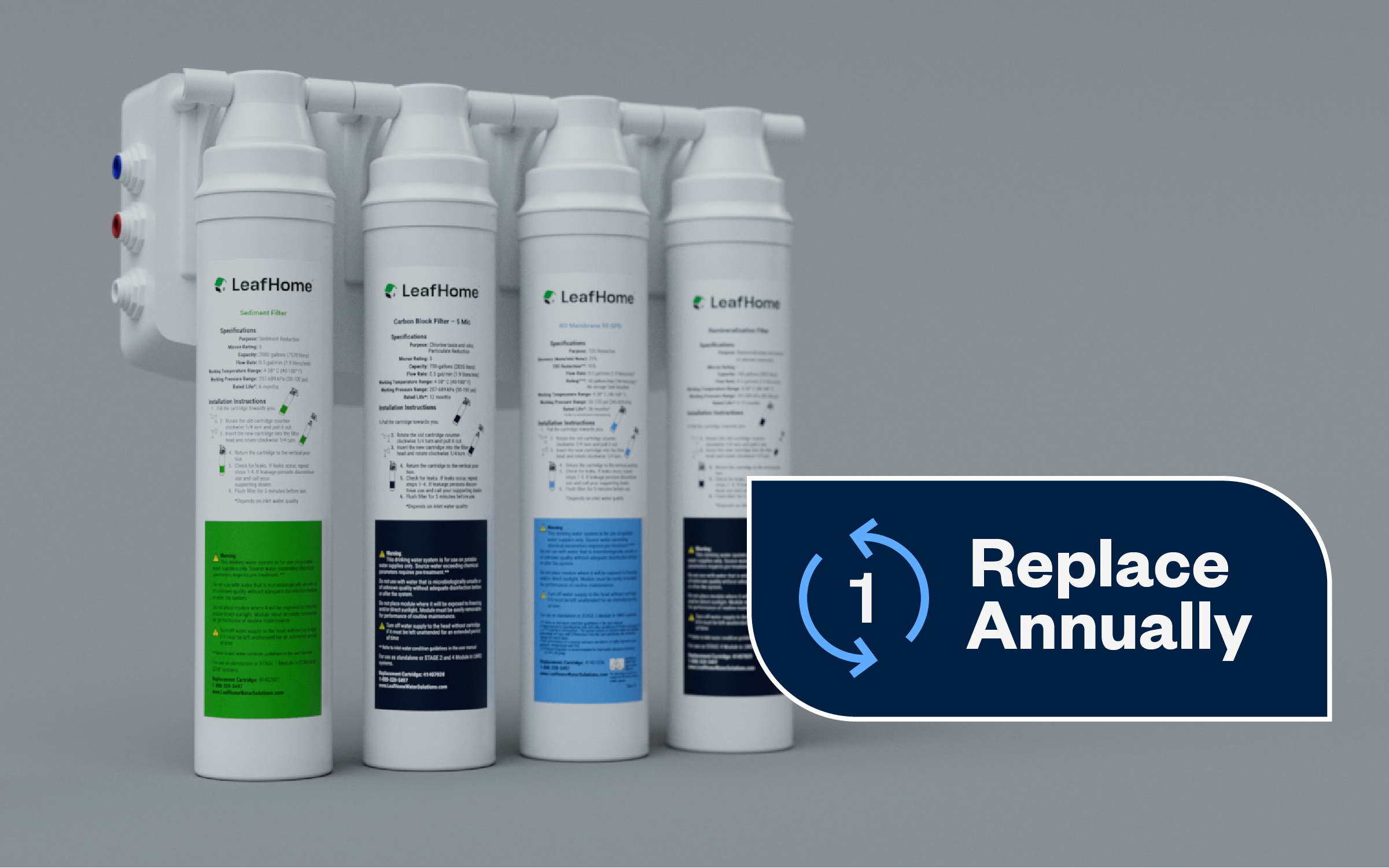 If the water tastes unusual after replacing the filters, try flushing the system again for a longer period. If the issue persists, ensure you installed the correct filters and check for any leaks or other issues within the system. If the issue still persists, please reach out to Leaf Home Water Solutions customer service at 833-452-2737 or email us at