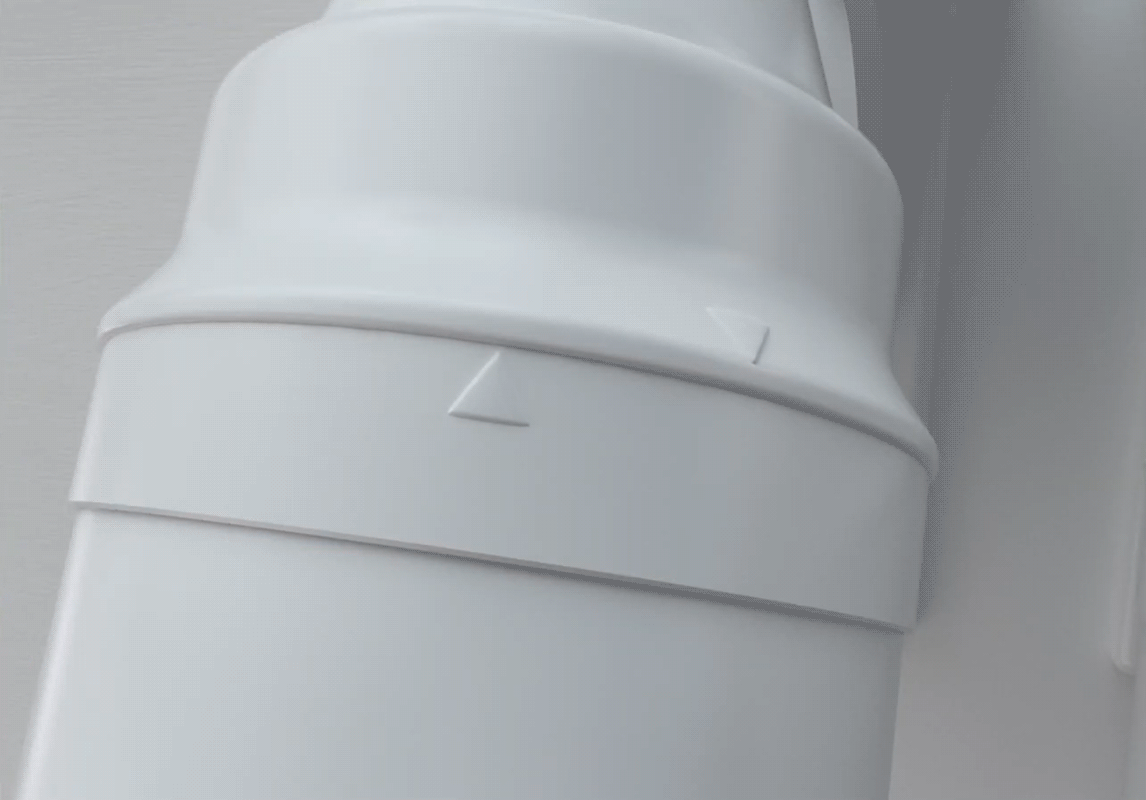 Insert the new cartridge into the filter head and rotate a quarter turn, making sure the arrow markings line up. Tilt the filter back to an upright position.